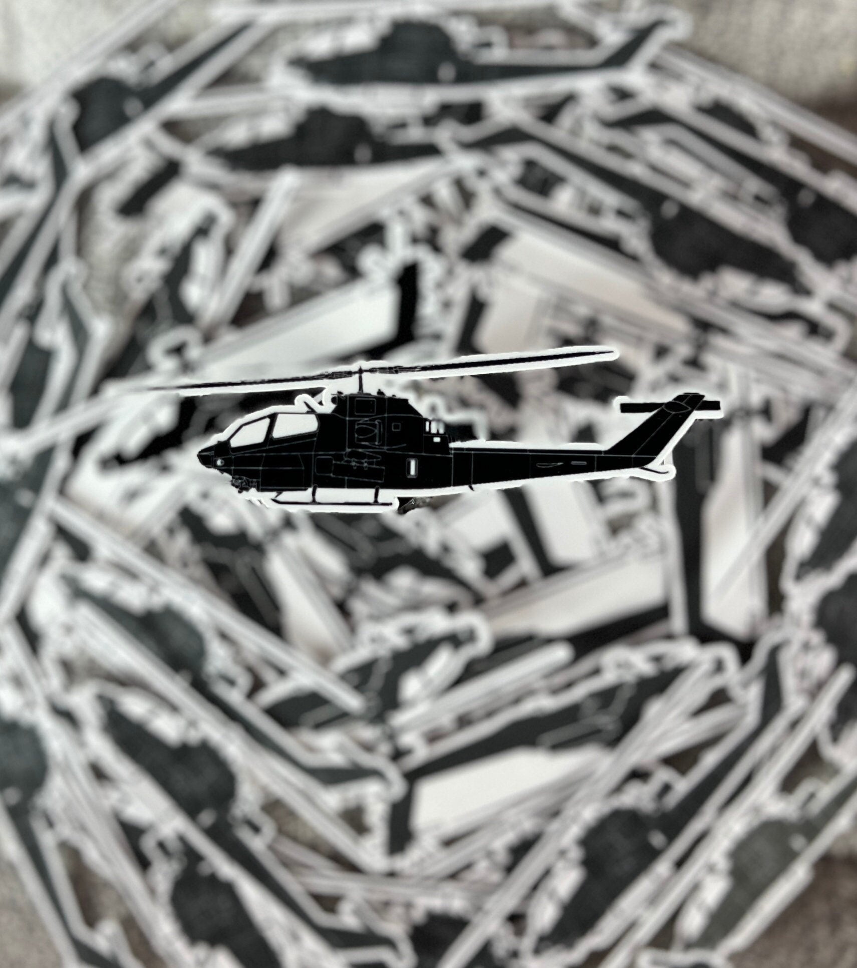 Bring this member of the Huey family to your water bottle, laptop, tumbler, etc. The AH-1 Cobra was the gunship of yester-year for the US Army. Made with high quality vinyl materials. Size: 3.5 x 1 In.